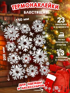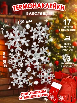 Блестящая Термонаклейка новогодняя на одежду 6 снежинок