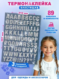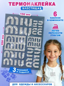 Блестящая термонаклейка на одежду Буквы английские серебро