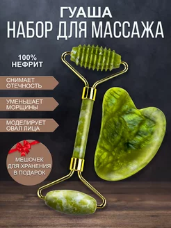 Массажер скребок гуаша и ролик для лица