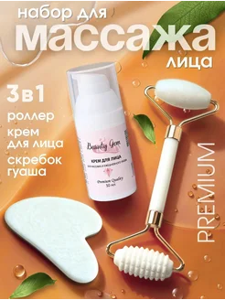Массажер нефритовый гуаша и ролик и крем для лица массажный
