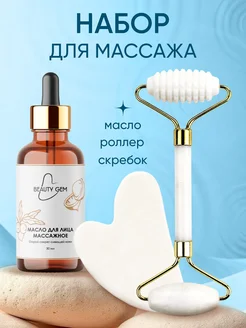 Массажный набор масло скребок Гуаша и ролик для массажа лица