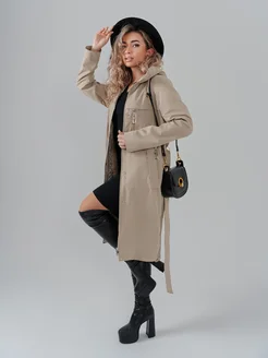 Плащ женский однотонный приталенный с капюшоном и поясом