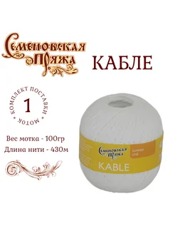 Пряжа для вязания Кабле Семёновскaя бел.супер 1 штука