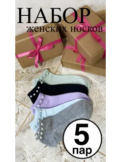 Носки женские короткие белые черные серые с бусинами 5 пар