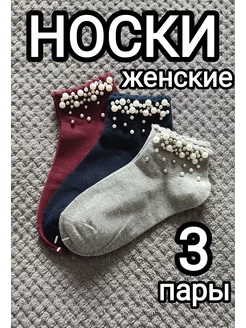 Носки женские короткие с бусинами хлопок 3 пары набор