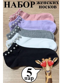Носки женские короткие с бусинами 5 пар хлопок цветные
