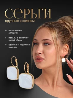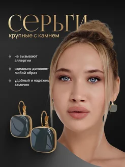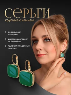 Серьги бижутерия женские висячие с крупным камнем зеленые