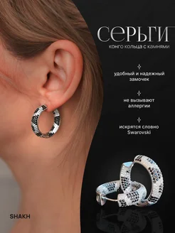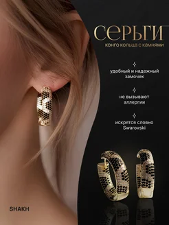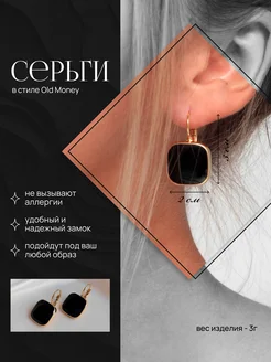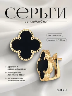 Серьги бижутерия женские маленькие черные в стиле ван клифф