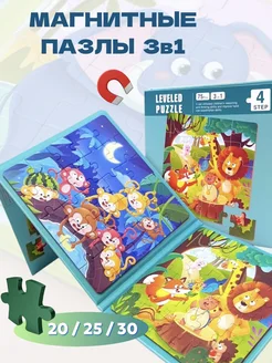 Магнитный пазл 3в1 книжка Животные 4 уровень