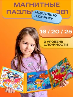Магнитный пазл 3в1 книжка Приключения 3 уровень
