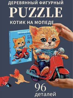Пазлы для детей деревянные «Кот на мопеде», 96 деталей