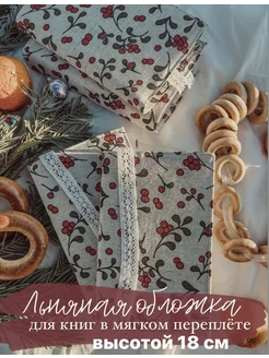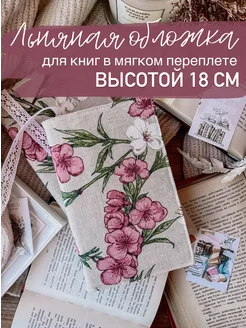 Льняная многоразовая обложка для книги 18 см «Дикая вишня»