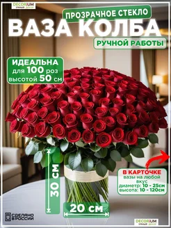 Ваза для 100 роз стеклянная прозрачная цилиндр 30 см
