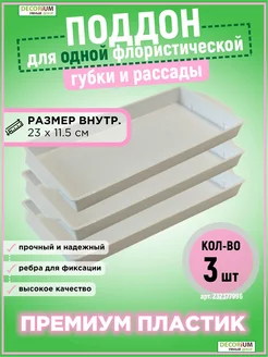 Поддон для одной флористической губки, цветов и рассады 3 шт