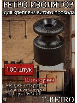 Изолятор для монтажа ретро проводки, цвет черный 100шт