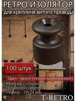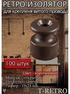 Изолятор для монтажа ретро проводки, цвет коричневый 100шт