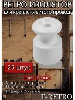 Ретро изолятор для витого провода, цвет белый, 25 шт