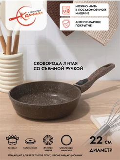 Сковорода 22 см со съемной ручкой и антипригарным покрытием
