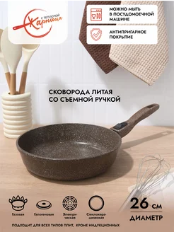 Сковорода 26 см со съемной ручкой и антипригарным покрытием