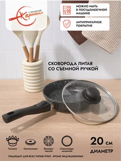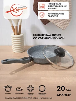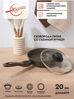 Сковорода 20 см маленькая с крышкой и съемной ручкой