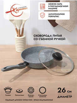 Сковорода 26 см с крышкой и съемной ручкой, антипригарная