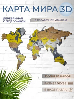 Карта мира настенная из дерева 3д 160х85 см наклейки