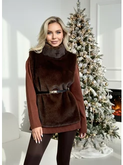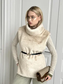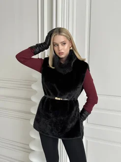 Манишка меховая с ремнем длинная зимняя теплая из эконорки