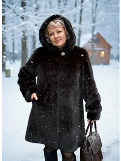 Шуба искусственная зимняя с капюшоном, длинная экошуба