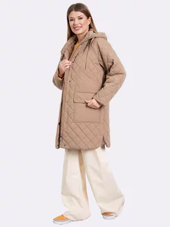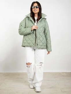Куртка весенняя стеганая оверсайз с капюшоном на молнии
