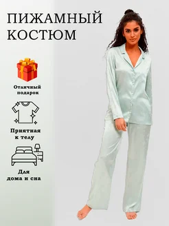Пижама со штанами и рубашкой шелковая домашний костюм