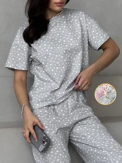 Пижама со штанами и футболкой оверсайз хлопок
