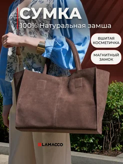 Сумка шоппер женская замшевая темно-коричневая