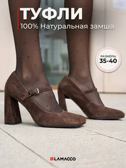 Туфли женские из натуральной замши Мери Джейн коричневые
