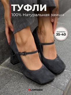 Туфли женские из натуральной замши Мери Джейн темно-серые
