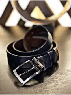 Двухсторонний кожаный ремень в подарочной коробке