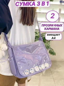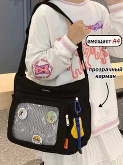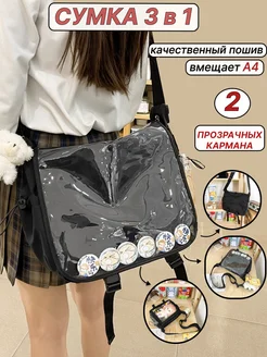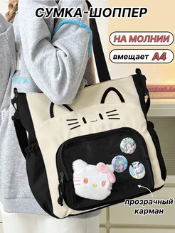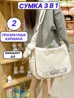 Сумка шоппер подростковая с прозрачным карманом аниме