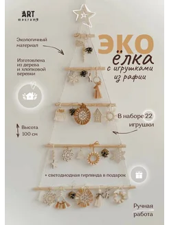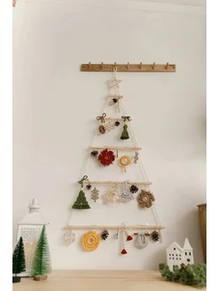 Елка деревянная с цветными игрушками макраме