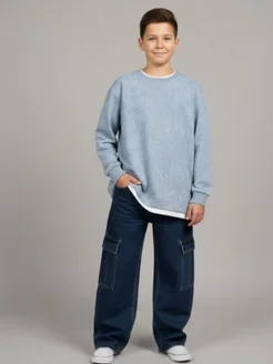 Свитшот синий вареный подростковый оверсайз кофта для школы