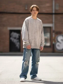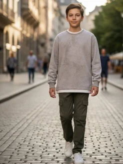 Свитшот бежевый вареный подростковый оверсайз для школы