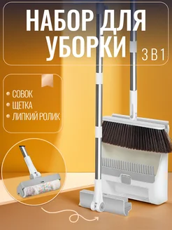 Набор для уборки щетка, совок и ролик для мусора 3 в 1