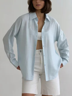 Рубашка льняная оверсайз офисная школьная вечерняя