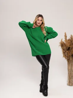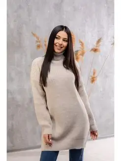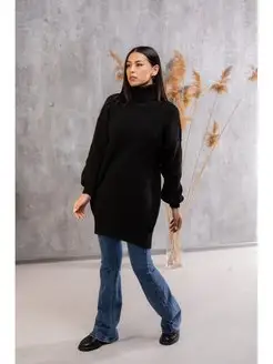 Удлиненный свитер-туника оверсайз с высоким горлом