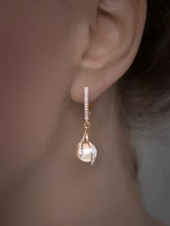Серьги с жемчугом позолоченное серебро 925 пробы