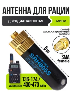 Антенна для рации Baofeng двухдиапозонная мини SRH-805S