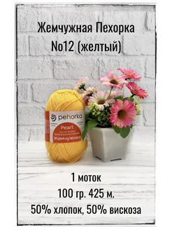 Пряжа для вязания крючком Жемчужная 12 желтый 1 моток