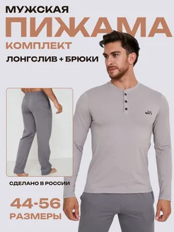 Пижама лонгслив и брюки комплект домашний хлопок