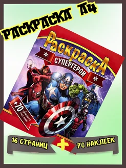 Раскраска СУПЕРГЕРОИ А4 с наклейками в картонной обложке