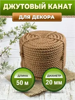 Канат джутовый д.20 мм, 100 м для декора и отделки