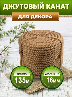 Джутовый канат упаковочный 16 мм шпагат веревка 135м