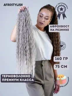 Хвост на резинке накладной афрохвост шиньон кудрявый